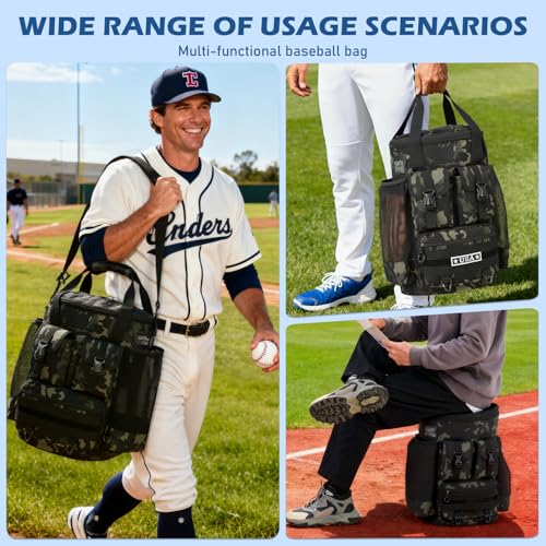 Extra-Large Capacity and Convenient Access Design: Specifically designed for 6-gallon baseball buckets, featuring a 360° top ring and heavy-duty dual side zippers for easy insertion into the bucket and quick access. The interior holds 5 dozen baseballs, 12+ balls, 5 bats, and various equipment. Multiple exterior functional pockets organize water bottles, phones, scoreboard, lineup cards, first-aid kits, and more. Integrated ID card slots and reflective strips meet daily training and night game requirements