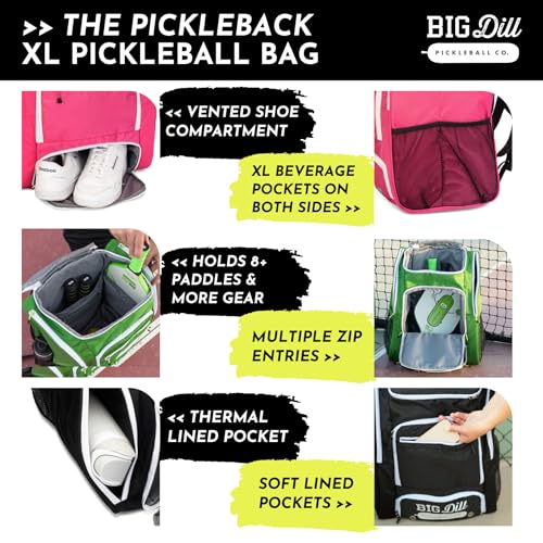 Big Dill Pickleball Backpack | Large Pickleball Bag with Shoe Compartment for 8+ Paddles & Accessories, Insulated Pocket