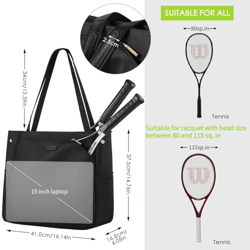 【Extra Large Capacity】Structure: 1 front dedicated tennis racket pocket and a large built-in pocket designed inside the bag,suitable for at least 2 tennis rackets, pickleball paddles, badminton racquet, squash racquet and other Accessories. 1 Main Compartment with 2 slip pockets and a zipper wet and dry pocket ,to organize 13.3-Inch laptop,iPad,books,tennis balls,sports sweatshirt clothes,towel,etc.Both side pockets can be used to hold water bottles or umbrellas