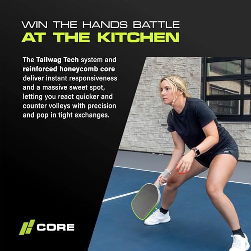 WIN THE HANDS BATTLE– The Tailwag Tech system and reinforced honeycomb core deliver instant responsiveness and a massive sweet spot, letting you react quicker and counter volleys with precision and pop in tight exchanges.