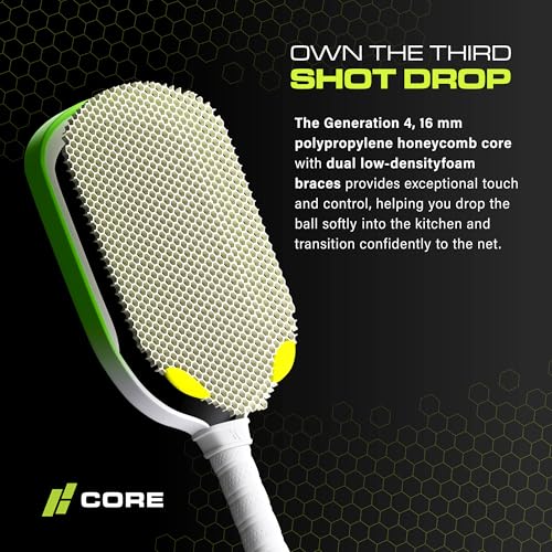 OWN THE THIRD SHOT DROP – The Generation 4, 16 mm polypropylene honeycomb core with dual low-density foam braces provides exceptional touch and control, helping you drop the ball softly into the kitchen and transition confidently to the net.