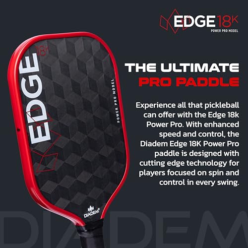 Diadem Edge 18K Power & Power Pro Paddle Series | USAPA Approved, 18K Carbon Fiber Face for Unmatched Spin, Control and Power | Thermoformed | Durable Edge Shield | Multiple Colors & Styles