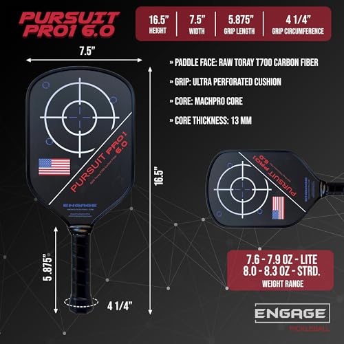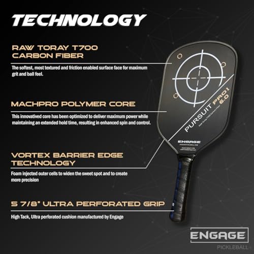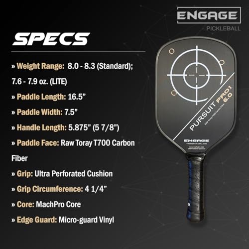 Engage Pursuit Pro1 Elongated 15.2mm Pickleball Paddle – Raw Carbon Fiber for Extreme Spin – MachPro Core for Maximum Power & Control (New, Standard Weight (7.8-8.2 Ounce))
