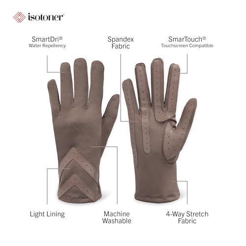 Keep warm without compromising your style with isotoner Women’s Spandex Gloves. Chic detailing and sleek, stretch spandex mean you can transition seamlessly between work and a night out, and a cozy fleece lining wraps your hands in supreme warmth. SmarTouch technology is touchscreen enabled so you don’t have to make a choice from keeping in touch and keeping warm. isotoner Gloves are machine cleanable and simple to wash. Crafted out of long lasting materials, these Gloves can also be wiped clean to lend a hand decrease the spread of germs and keep them feeling modern. For easiest results, machine wash in cold water and air dry.