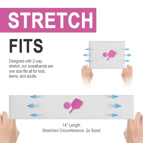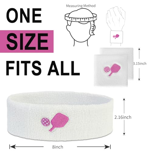 SIZE INFORMATION: the pickleball headband is approx. 7.1 x 2 inches, pickleball sweat wristbands are 3.14 x 3.14 inches. The good elasticity makes the headband, wristbands suitable for teens and adults to wear pickleball clothes.