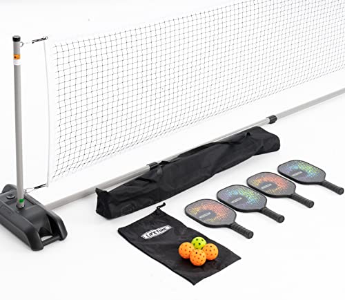 Get outside with your family and friends and face off to determine who is the Pickleball champ. The Lifetime Pro Pickleball Set provides hours of exercise that is sure to be competitive and fun. Get into teams of 2 with the 4 paddles included in the set. Each set of paddles comes with a matching, color-coordinated design so you can distinguish between teams. The high quality net and base are made to maintain regulation height and width while you compete. With 3 outdoor Pickleballs and 1 indoor Pickleball, you can start a match rain or shine. The Lifetime Pro Pickleball Set is the perfect way to stay active and bond with family and friends. Lifetime Pro Pickleball set – Features a freestanding 20-foot heavy-duty pickleball net, (4) high quality paddles, (3) outside pickleballs, (1) indoor pickleball, (2) portable bases, powder-coated steel poles (grey) and a bag for paddles and a bag for complete set.