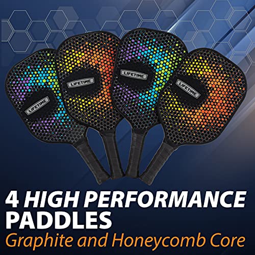 COMPLETE SET: 4 Top of the Line Graphite Paddles, 1 Indoor and 3 Outdoor Pickleballs