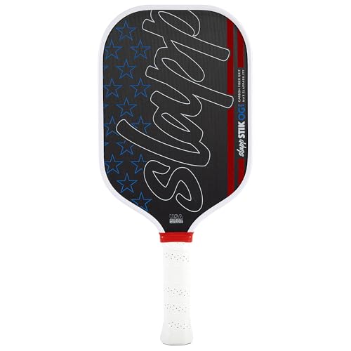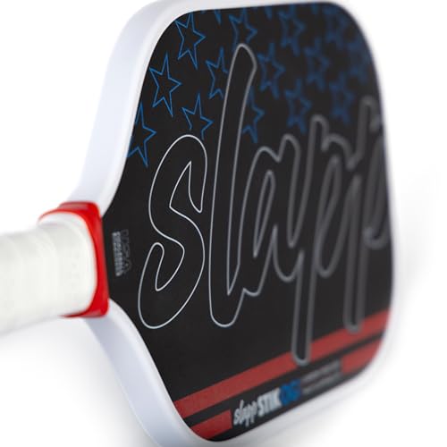 The Patriot SlappSTIK OG Raw paddle: designed to showcase your patriotism with its vibrant shades of red, white, and blue. Add a touch of the USA on the court with this eye-catching paddle that combines style and sentiment in one striking design. Let’s go America! The slappSTIK OG Raw features raw carbon fiber surface technology for grit and grab so you can shape the ball the way you want to. This paddle comes packed with a punch to give you the advantage in slapp battles at the kitchen. The raw carbon fiber texture helps you create crazy spin on dinks and added feel with resetting shots. Built to slapp, this paddle is designed with a thermoform edge for durability and a large sweet spot for consistency to take your game to the next level. USAPA Approved