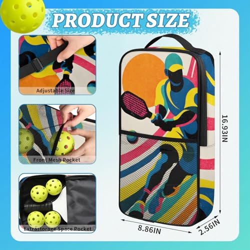 【Well Made & Perfect Size】Made from polyester, which is water-resistant and durable, which can protects your pickleball racquet from impact, moisture, dust and other element. The pickleball bag for women has excellent sewing and zippers that glide smoothly. And this pickleball bag measures 16.93”H*2.56”W*8.86”L, easily store your pickleball gear.