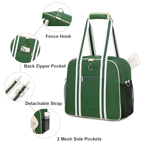 【Large Pickleball Bag】With its large tote design, our pickleball tote bag provides ample space to carry all your essential gear. It features a front pocket specifically designed to hold two pickleball paddles, while inner storage pockets allow for convenient organization of accessories and more paddles. With mesh pockets on the inside and outside to organize more balls.In addition, there is a zippered pocket on the back to hold small items.