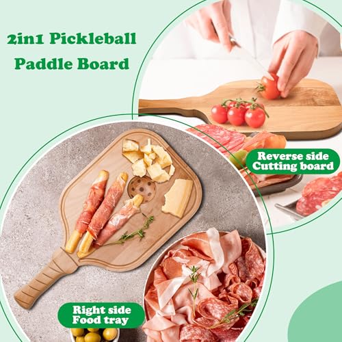 【2in1 Food Tray and Cutting Board】: The front of the pickleball snack tray can be utilized as a food tray to hold your favorite cheese, meat, and fruits, and the smooth back will also be used as a cutting board