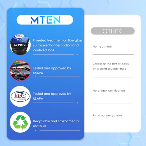 Complete Pickleball Paddle Set: Includes 2 pickleball paddles, 4 outdoor pickleball balls, 2 grip tapes, and 1 carrying bag. A perfect pickleball paddle for women, men, kids, and beginners! MTEN brand is committed to give buyers attentive service. For any issues with the pickleball set, please contact us