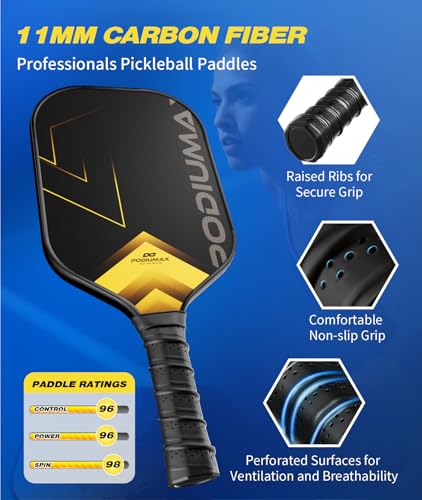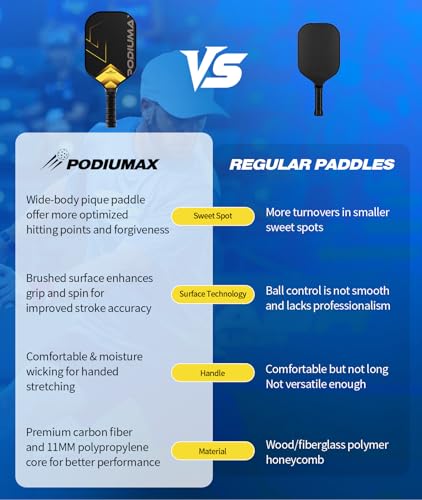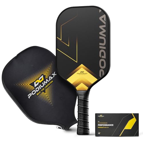 PodiuMax T700 Carbon Fiber Pickleball Paddle with Aero Throat, 13mm Hexa Polymer Core for Power&Regulate&Spin, Edgeless Pickleball Racket, Lightweight Pickle Ball Paddle for All Players (16″ x 7.6″) PodiuMax Pickleball Paddles, Carbon Fiber + 11mm Ultra-Thin Hexa Polymer Core for Fast Shots & Pinpoint Regulate, Pickleball Racket with Anti-Sweat Grip, Pickle Ball Paddle for Net Volleys & Training PodiuMax Pickleball Paddles Set of 2, Fiberglass Surface & 11mm Hexa Polymer Core, Lightweight Pickleball Rackets with 4 Balls & Carry Bag, Pickle Ball Paddles Set for Women Men (15.8″ x 7.9″)