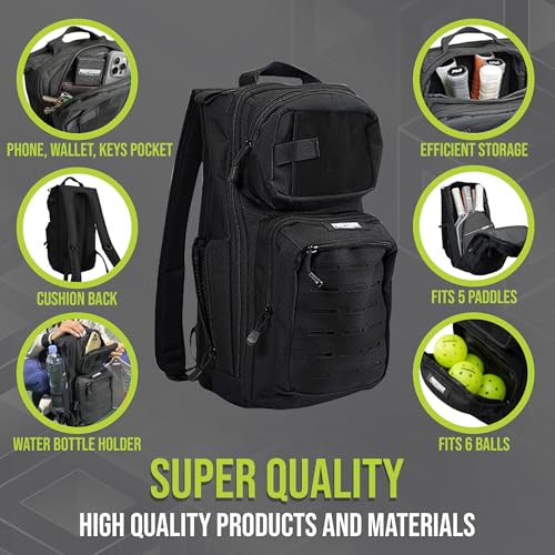Professor Pickleball CourtCommander Pickleball Backpack – Lightweight & Efficient Pickleball Bag – Holds 4 Paddles, 6 Balls, & Cup Holder – Tactical Style