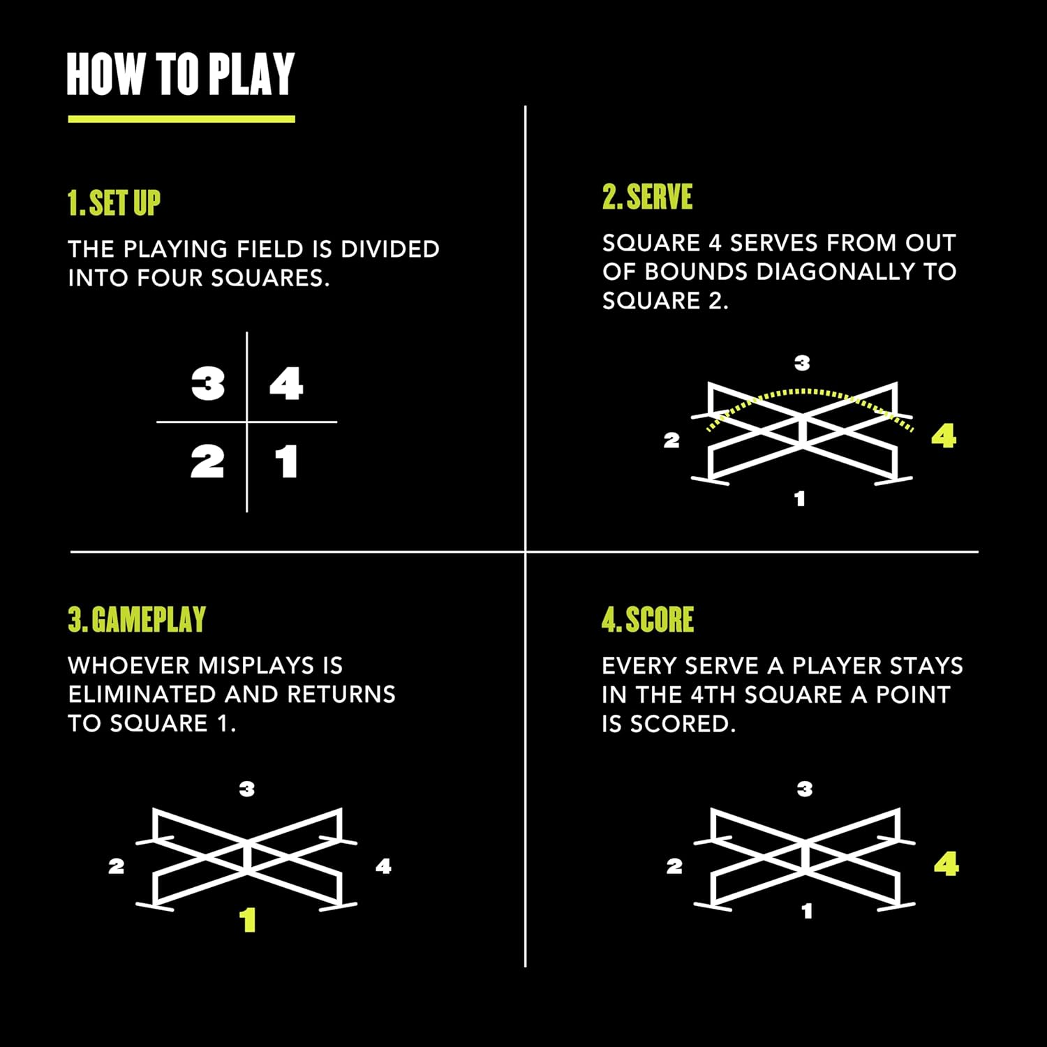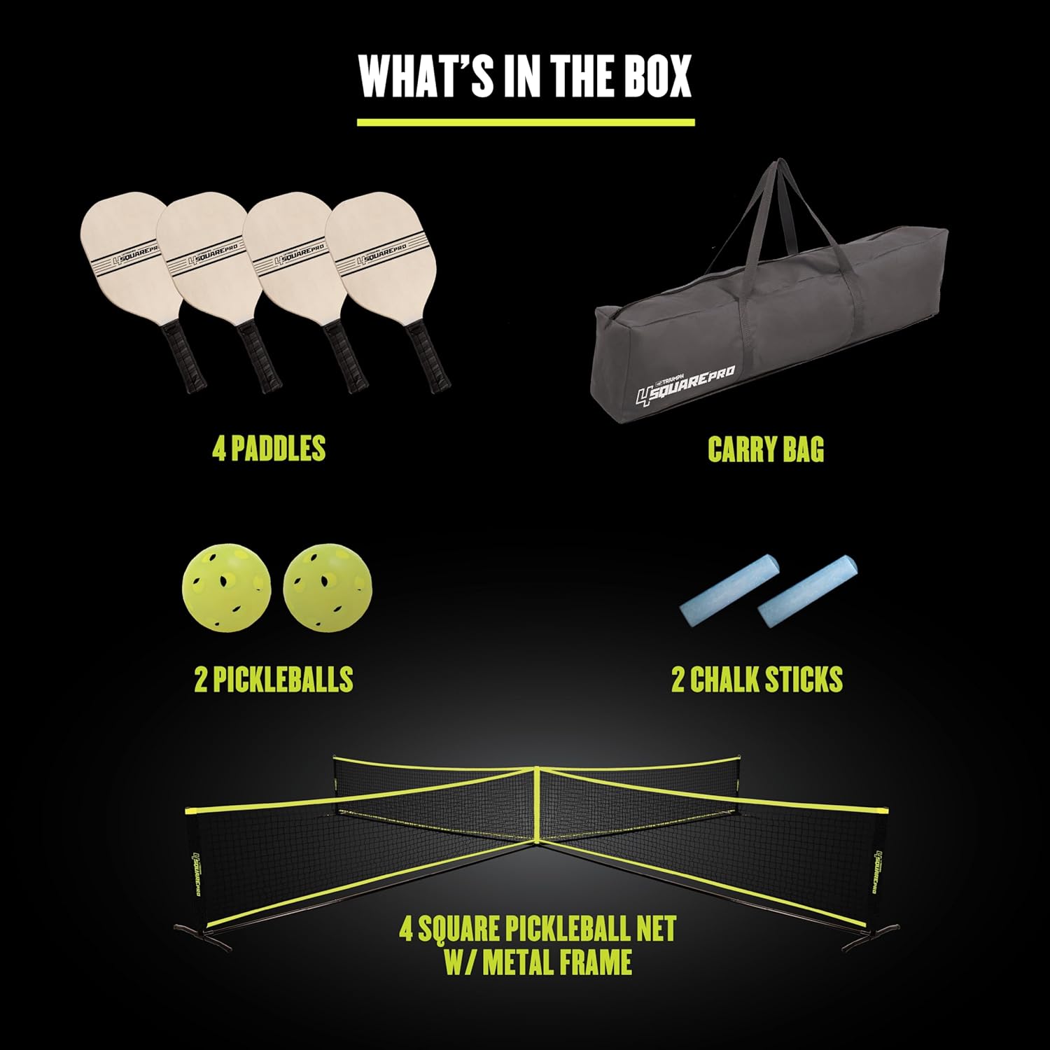 Upgrade your outdoor game setup with the 4-Square Pro—an all-in-one pickleball and four square set built for competitive, high-energy play. Featuring Pro-level enhancements like higher density paddles, a tear-resistant net, stronger nylon components, and a regulation 36″ net height, this versatile set is perfect for everything from family lawn games to intense driveway tournaments. The 20-foot-wide net easily converts between game modes, while the durable metal frame and tool-free assembly make it ideal for hard surfaces like blacktops, gym floors, and driveways. Whether you’re hosting a backyard game night, leading PE class, or practicing pickleball fundamentals, the 4-Square Pro delivers fast setup, portable convenience, and long-lasting fun for all ages.