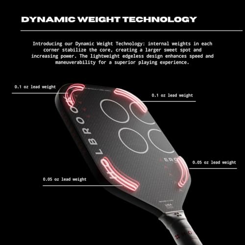 DYNAMIC WEIGHT TECHNOLOGY: This carbon fiber pickleball paddle has small weights strategically placed in each corner, expanding the sweet spot to give superior control & power balance for every shot.